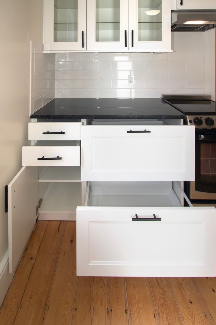 • Modern kitchen with granite countertops